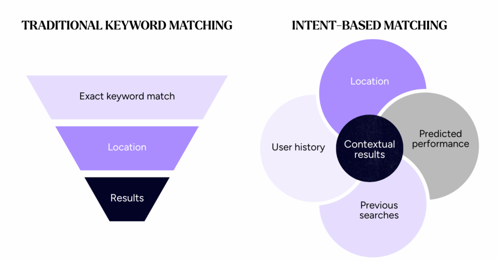 Instead of relying solely on the exact words users type, Search Term Matching uses intent-based technology. It analyses signals including: